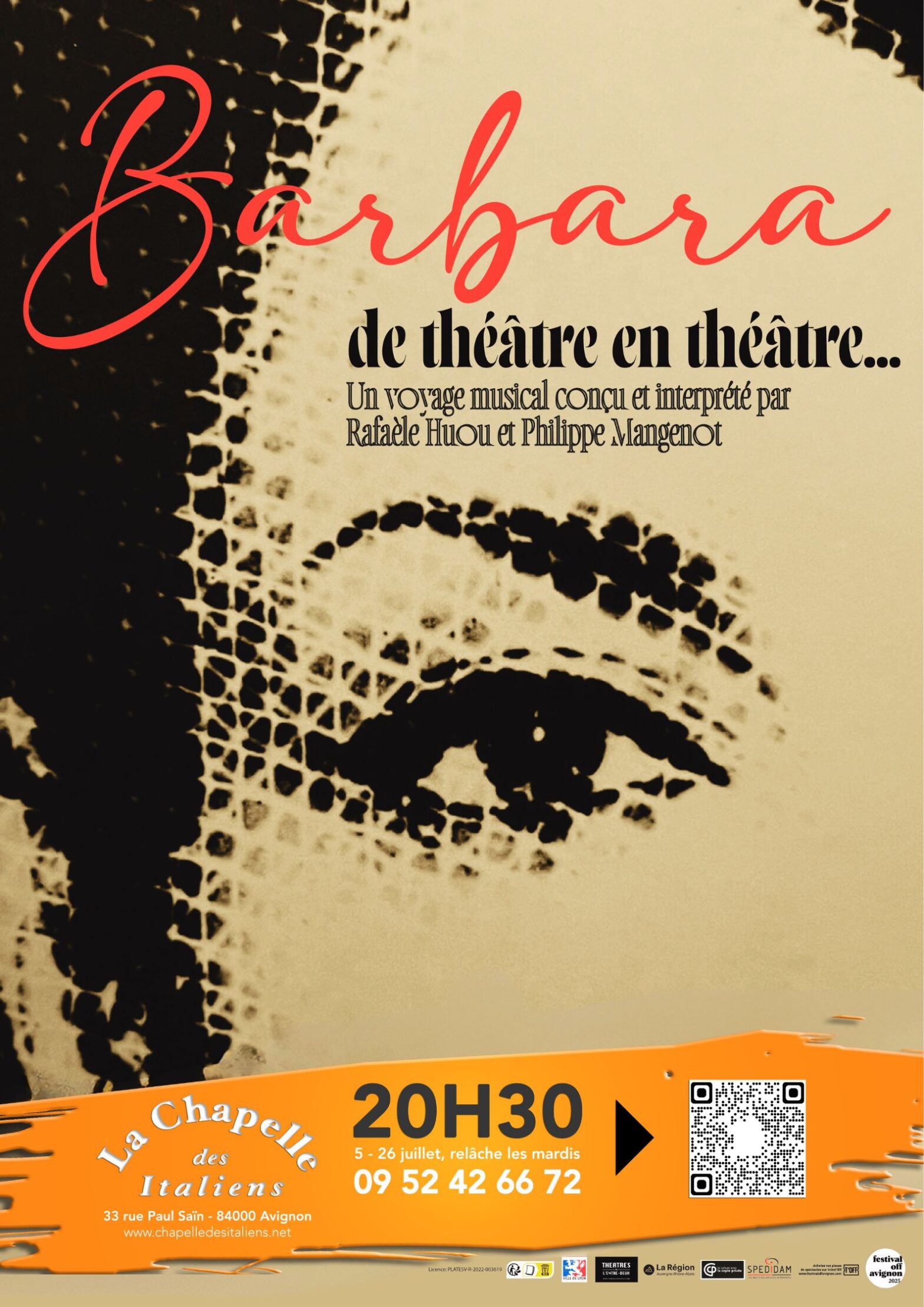 Barbara et alors ? Ce pourrait être n’importe quel autre artiste, l’important c’est l’histoire… Et le texte (signé des interprètes : Rafaèle Huou et Philippe Mangenot) ! A partir des mémoires de Barbara, de ses mots également, qui les ont certainement portés dans le travail d’écriture, les deux auteurs ont ciselé un texte porteur d’un récit poignant. Une histoire qui prend aux tripes, contée par Philippe Mangenot, narrateur narquois parfois, et animateur de foule aussi (le public participe, comme une évidence si l’on se fie aux paroles de Barbara : « Je vous aime » -elle terminait souvent ses concerts avec cette phrase-. « Merci d’être là », « Vous m’avez sauvée », « Je vous dois tout »)